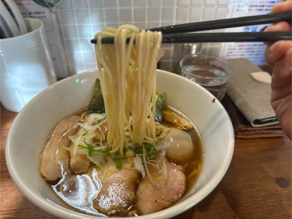 麺の表面はつるりとしながらも、コシがしっかりしているため、最後までダレることなく、スープとの一体感を保ったまま食べ進められます。